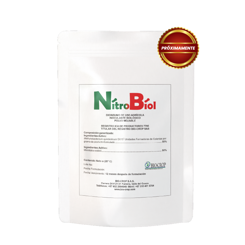 Es un biofertilizante producido con una cepa de Methylobacterium symbioticum; bacteria benéfica que convierte el N2 del aire en amonio (NH4+) a través del complejo nitrogenasa, metabolizándose directamente en aminoácido de manera constante durante todo el ciclo del cultivo. NITROBIOL®wp entra en la planta a través de las hojas, aportando un flujo constante de nitrógeno a la planta.