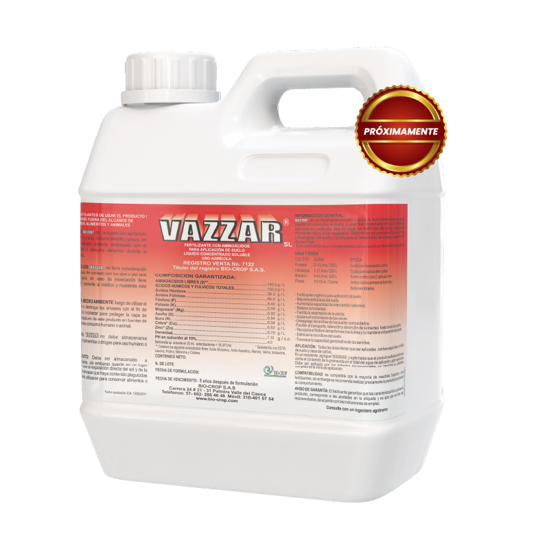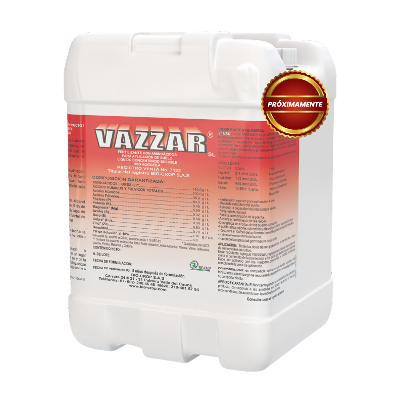 Es un fertilizante para aplicación foliar, líquido concentrado soluble. Es un fertilizante foliar con 15 L – α aminoácidos, obtenidos por un proceso de síntesis orgánica y con una fórmula balanceada de Nitrógeno, Fósforo, Potasio, Carbono Orgánico, Materia Orgánica y Elementos Menores rápidamente asimilables. Incrementa significativamente el ahorro de energía en los diferentes cultivos, mejorando el desarrollo, producción y calidad en las cosechas.
